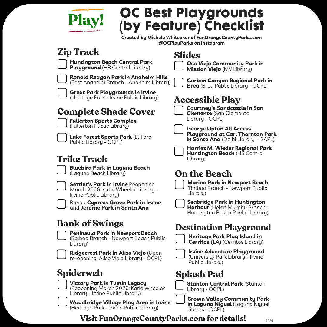 And I know I shared this inside the newsletter last week and that it’s available in the post, but I also added the Best Playgrounds in OC 2026 checklist into the bookshop for FREE.